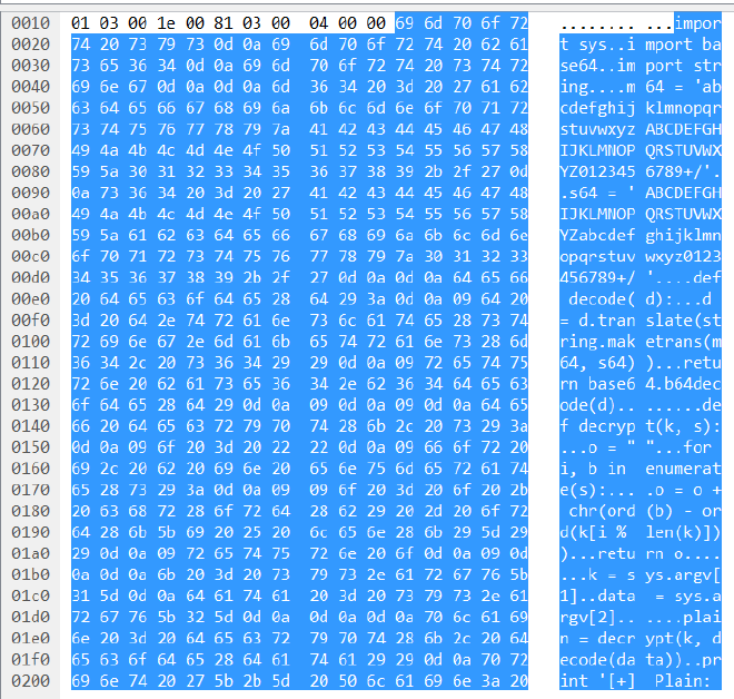 I tried to directly decoding the base64 string but only got rubbish output. We need dec.py to decode the string.
